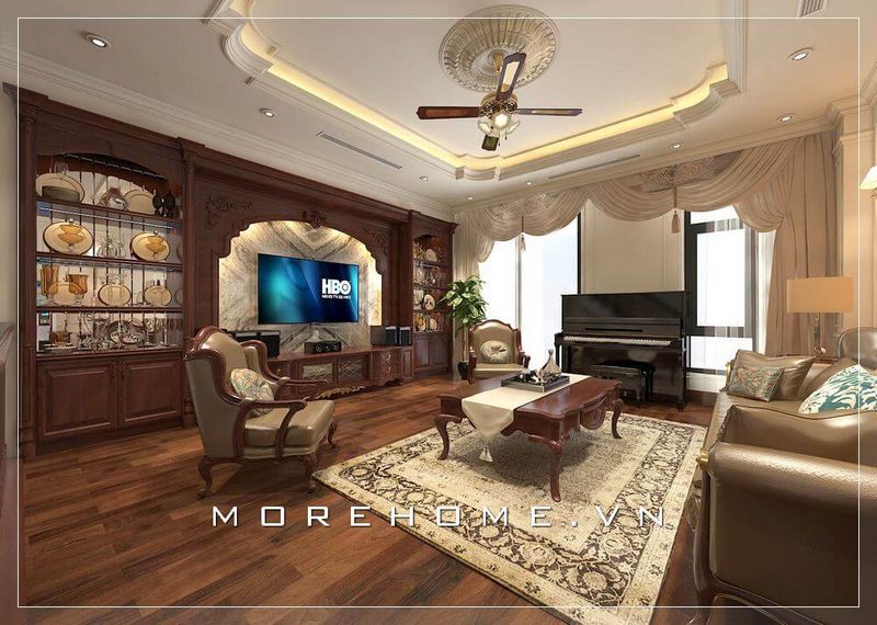 Thiết kế phòng khách sang trọng với nội thất tân cổ điển ấn tượng, cao cấp