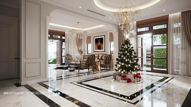 Thiết kế nội thất biệt thự theo xu hướng mở đầy sang trọng, thoáng đãng, không gian sinh hoạt chung được bố trí liền kề mang đến sự tiện nghi nhất cho gia chủ