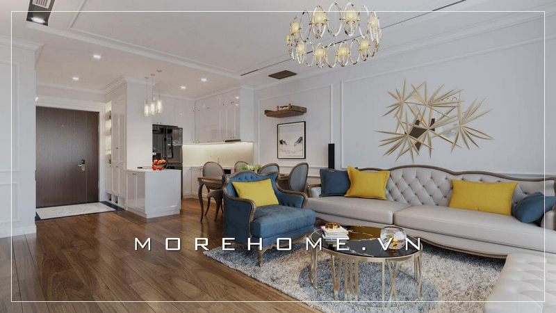 Khu vực tiếp khách sang trọng hơn với bộ sofa chung cư hiện đại