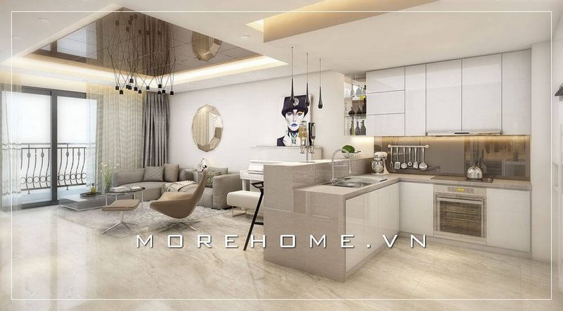 Trang trí nội thất chung cư đẹp, hiện đại với gam màu trắng be chủ đạo mang vẻ đẹp tinh tế, cao cấp