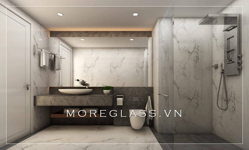 Vách kính ngăn hiện đại được ưu tiên lựa chọn để sử dụng trong phòng tắm biệt thự và nhà phố, trở thành xu hướng của thời đại hiện đại.
